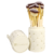 The high-style selection of super-soft synthetic face and eye cosmetic brushes in a gold-studded ivory cylindrical case is perfect for professionals as well as consumers. The protective hard case snaps closed for travel and adds a chic accent to any makeup table.