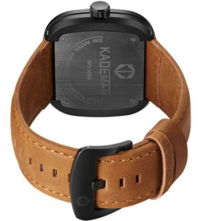 Kademan Brown Unique Display Tonneau Dial Leather Analog Men’s Watch